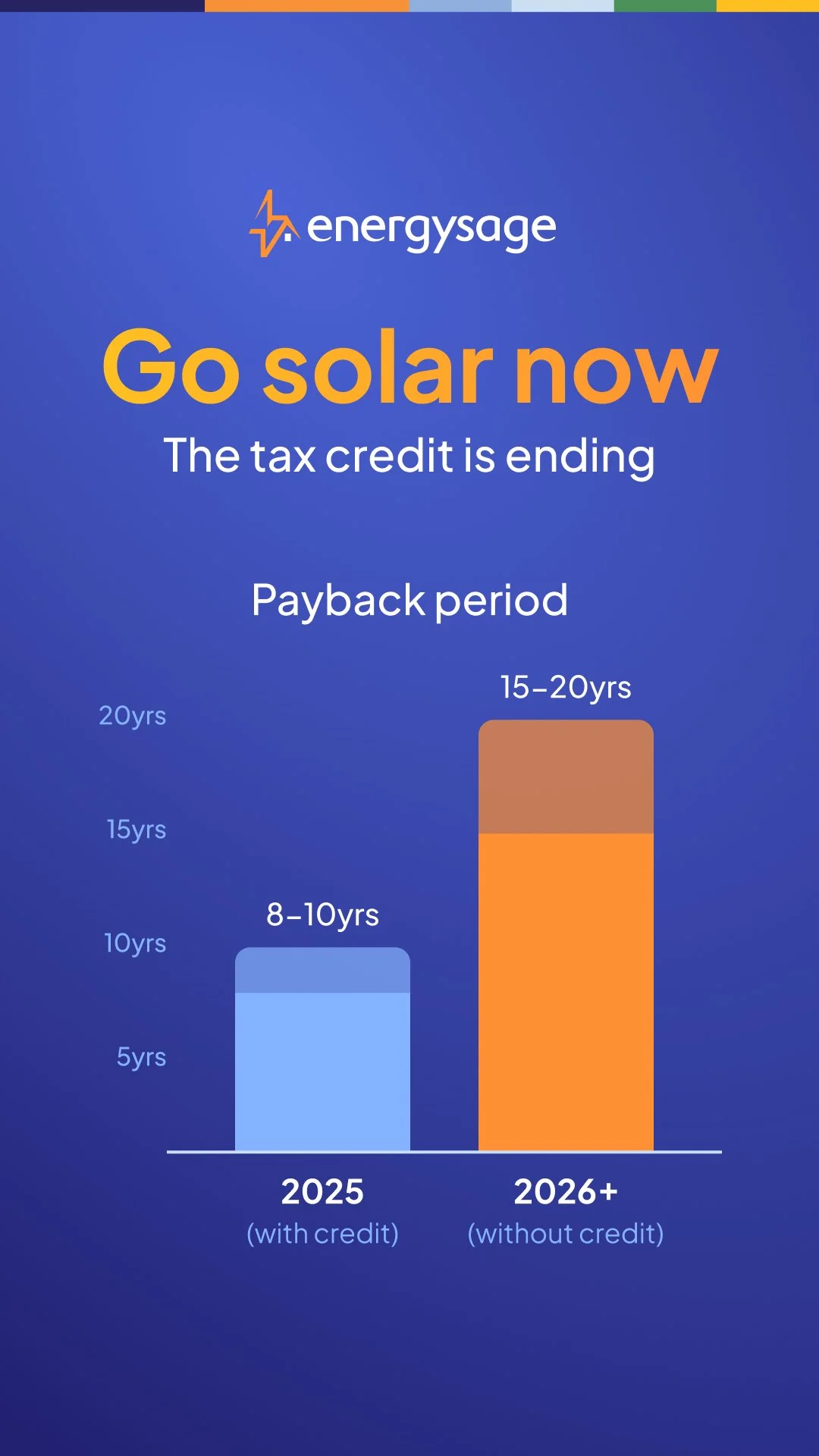 This series of paid ads was created for the Go Solar Now campaign, which centered on urgency messaging to drive conversions before the federal solar tax credit expired at the end of the year. The designs were crafted to capture attention quickly, with bold visuals and clear calls to action that emphasized the value props of solar. Each ad was optimized to reinforce the campaign’s message across digital platforms while maintaining brand consistency.